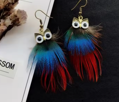 Vous recherchez un bijou léger comme une plume avec une touche de bohème, d'ethnique qui invite aux voyages, portez ces Boucle d'oreilles Hibou Plume Mouchetée Rouge.